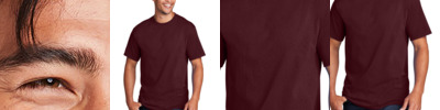 4.3 oz., 52% cotton 48% polyester, 30 singles; Ultra-fine cotton blend; Fashion fit; Side seams; Scooped neckline; Tear-away label; Made in a w.r.a.p. certified factory;