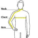 | Chest | 30-32 | 32-34 | 34-36 | 36-38 | 38-40 | 42-44 |