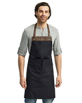 8 oz., 70% cotton, 30% polyester twill; contrast stitching; antique brass and silver rivets; four pocket compartments; 42" long self fabric ties; 16" L x 31"W; Oeko-Tex® Standard 100 certified; WRAP certified;