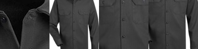 - Black Denim: 6.8 oz., 60% cotton, 40% polyester twill