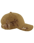 100% cotton, brushed chino twill; Camo - 60% cotton/40% polyester; Structured front; Pre-curved visor; Hook and loop backstrap; Detailed embroidered wildlife scene on right side; DRI DUCK embossed leather patch left of back vent; Imported;
