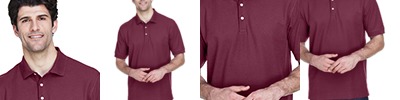 4.8 oz., 100% polyester mini-jacquard; Anti-bacterial; Anti-static; Moisture-wicking; Stain-resistant; UV protection; Relaxed fit; Flat-knit collar;